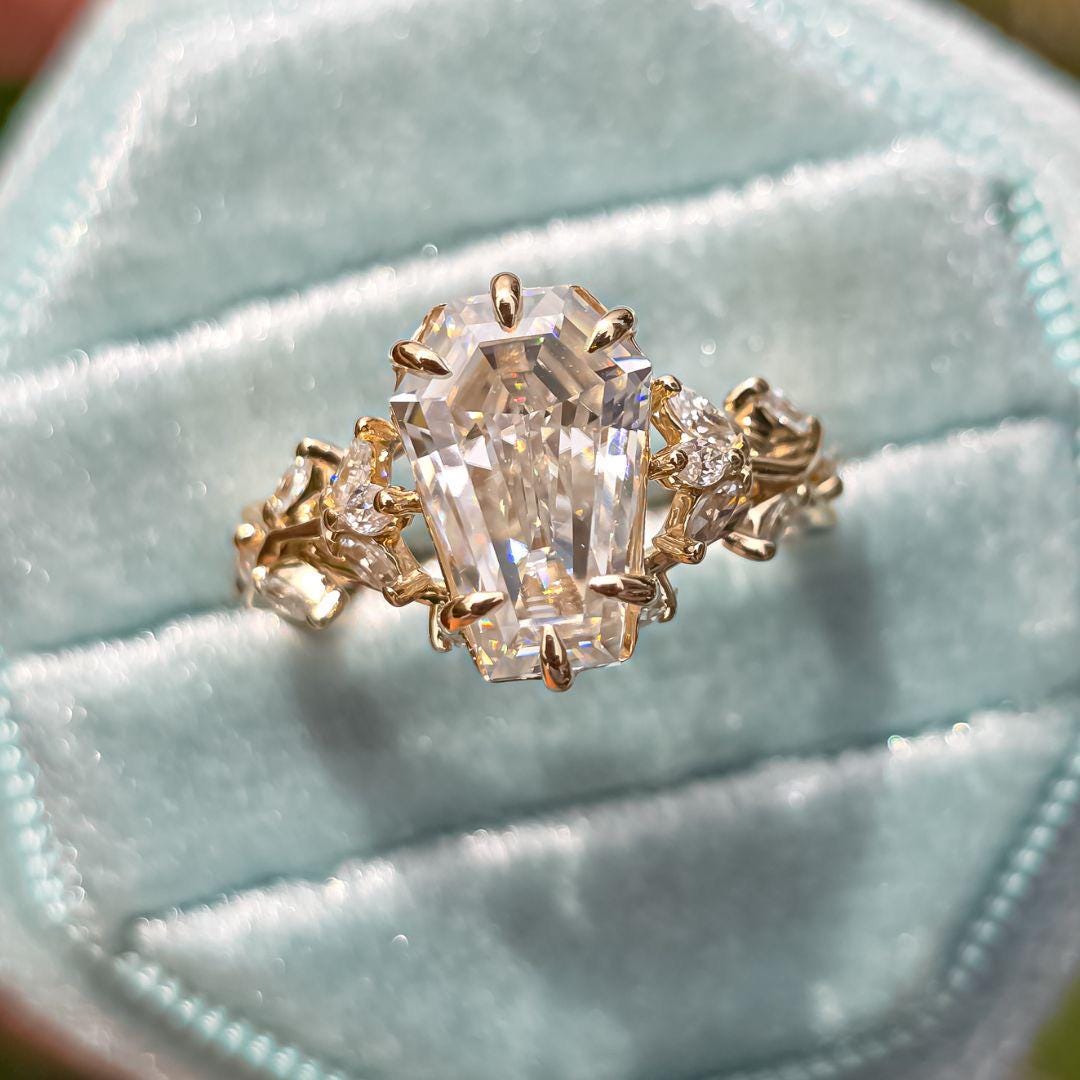 4Ct Coffin Diamond Engagement Ring 14K Solid Gold Coffin Moissanite Diamond Ring Coffin Ring For Women Solitaire Ring Anniversary Gift Ring